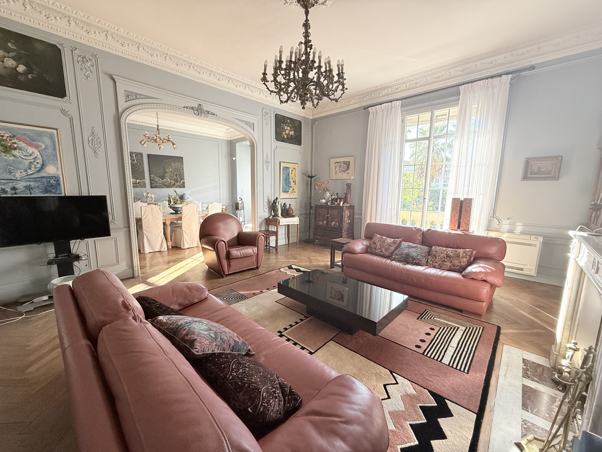 Mesdames, Messieurs, Vous aimez les grands espaces ? Vous recherchez un appartement de caractère ? Vous appréciez le charme intemporel de l’architecture haussmannienne ? Alors ce bien rare situé au cœur de Nice pourrait vous séduire. Au sein d’un élégant immeuble bourgeois des années 1920, cet appartement de prestige de 224,82 m² séduit immédiatement par ses volumes généreux, sa hauteur sous plafond d’environ 3,5 mètres et le raffinement de ses éléments architecturaux d’époque. Dès l’entrée, l’espace et la lumière s’imposent naturellement. Les pièces de réception s’ouvrent sur un magnifique salon exposé plein sud, baigné de soleil et offrant une vue apaisante sur un parc arboré, véritable écrin de verdure au cœur de la ville. Dans ce salon de réception, le regard est immédiatement attiré par une remarquable cheminée en marbre surmontée d’un trumeau richement décoré, véritable pièce maîtresse de l’espace. Autour d’elle, les moulures finement sculptées, les panneaux muraux décoratifs et les fresques élégantes qui habillent les murs témoignent du soin apporté à l’architecture intérieure et rappellent le raffinement des grands appartements bourgeois de la Riviera. La grande hauteur sous plafond, sublimée par un lustre d’époque, renforce encore l’impression de prestige et d’élégance. Une salle à manger prolonge harmonieusement cet espace de réception, invitant à recevoir dans une atmosphère chaleureuse et conviviale. La circulation mène ensuite vers les autres espaces de l’appartement : une grande cuisine indépendante Entierement équipée, fonctionnelle et lumineuse, ainsi que trois chambres principales orientées à l’est, profitant d’une douce lumière matinale. L’appartement dispose également d’une salle de bains, d’une salle d’eau avec toilettes, d’un WC invités, ainsi que d’espaces de service comprenant buanderie, dégagements et nombreux rangements. Les volumes généreux et la configuration traversante offrent un superbe potentiel pour créer une résidence d’exception, alliant le charme de l’ancien au confort contemporain. À ces prestations déjà rares s’ajoutent deux chambres de service, un garage en rez-de-chaussée, véritable atout dans le centre-ville, ainsi qu’une cave, complétant idéalement cet ensemble. Un art de vivre au cœur de la Riviera Vivre ici, c’est profiter pleinement du style de vie unique de Nice. À quelques minutes seulement se trouvent les élégantes avenues commerçantes, les marchés provençaux, les restaurants et les cafés qui font la renommée de la ville. La célèbre Promenade des Anglais, la majestueuse Place Masséna et les ruelles pleines de charme du centre historique invitent à profiter d’un cadre de vie exceptionnel entre mer, culture et douceur méditerranéenne. Le quartier bénéficie également d’une excellente accessibilité grâce à la proximité du Tramway de Nice et de la Gare de Nice-Ville, permettant de rejoindre rapidement Monaco, Cannes ou Antibes, tandis que l’Aéroport Nice Côte d’Azur se trouve à quelques minutes seulement. Un emplacement idéal pour une résidence principale de prestige, un pied-à-terre sur la Côte d’Azur ou un investissement patrimonial au cœur de la Riviera française. Prix 2 310 000 € – Prix public N'hesitez pas à me contacter pour plus de renseignements ou visites Contact Cathy +33 6 80 75 56 34 Les informations sur les risques auxquels ce bien est exposé sont disponibles sur le site Géorisques